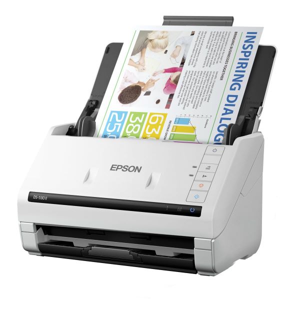 El escáner de documentos dúplex a color. Epson DS-530 II es la opción inteligente para la gestión de documentos empresariales, ya que ofrece un rendimiento rápido y eficiente. Las tecnologías avanzadas de alimentación de papel, como la eliminación de páginas en blanco, la rotación automática, el recorte automático, la detección de suciedad y la protección del papel, ayudan a mejorar la productividad.
